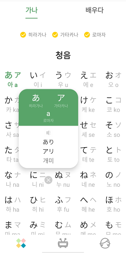 일본어 학습의 기초인 히라가나, 반탁음 요음도 쉽고 간단하게 공부 할 수 있는 어플입니다. 일본어문자, 50음도 히라가나 가타카나 한자