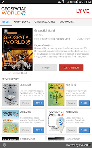 Geospatial World monthly magazine (formerly known as GIS Development magazine) addresses current and relevant issues of the Global Geospatial domain. Each edition of the magazine brings for the latest news and happenings from the various part of the world, presents viewpoints of the experts, through interview and perspective articles, assimilate case studies and reviews on the recent and upcoming technologies, products and also advocate on various policy issues. Considered by the experts’ as one of the best publications in its field, the magazine enjoys a circulation of 15,000 copies to over 140 countries across the globe. The special focus of the magazine is in South Asia, Asia Pacific, Middle East, South America and African countries. The readership of Geospatial World magazine comprises of a complete cross section of the community. It is widely read by geographers, surveys and cartographers, academician, researchers and students and also by engineers, managers and developers.