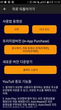 또한, 잠들기 전 또는 동영상을 듣고 싶을 때, 유튜X의 다크모드는 화면을 어둡게하고, 화면터치를 비활성화하고, '광고건너뛰기'를 위한 자동 클릭을 제공합니다.