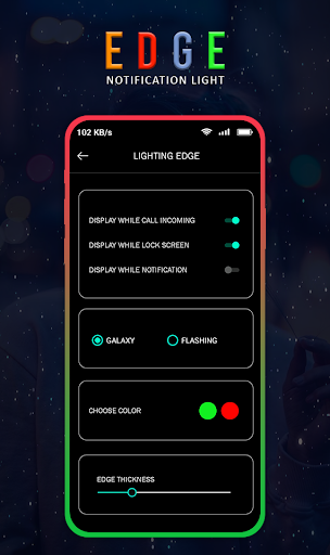 Edge Notification Lighting - Edge Incoming Call app allow users to set Edge lighting notification announcer.application has the option to set Edge lighting notification on specific contact and also option to set an application notification.it has all attractive lighting options with which your all notification looking fantastic. install and use this application to make your all incoming notification unique from other devices.