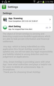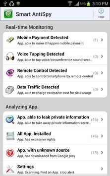 - Leakage of Private Information: Smart AntiSpy detects and shows suspicious applications which