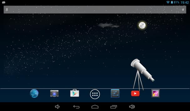 This live wallpaper shows a scene of night. With moving clouds, falling comets, shining moon; your screen will look beautiful. This app does not contain preference screen, just install and use both for tablet and phone.