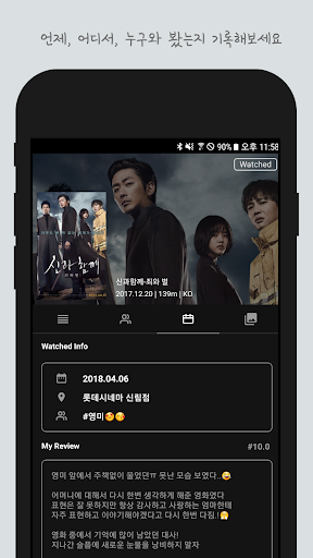 영화를 등록하면 '언제', '어디에서', '누구와' 봤는지 기록하고 관리할 수 있어요.