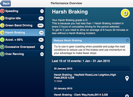 DPM은 운전자에게 많은 기준에 대한 성능에 대한 자세한 견해를 제공하며 개선을 위해 조언과 팁을 제공합니다. 이 앱은 또한 운전자가 팀의 다른 사람들과 비교하여 성능을 볼 수 있습니다.