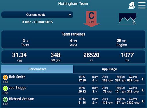 팀 리더는 앱을보다 광범위하게 사용할 수 있으며, 최악의 순서대로 정렬 된 팀의 모든 드라이버를 보여주는 운전자 리그 테이블 운전사. 팀의 각 드라이버에서 DPM과의 참여 수준을 보여주는 추가 정보도 사용할 수 있습니다.