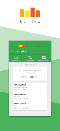 앱을 사용하면 스토브를 관리 할 수 있습니다. 수정 전원, 온도, 환기 매일 / 주간 프로그래밍 관리