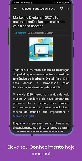 응용 프로그램은 또한 오프라인으로 작동하므로 비즈니스 계획, 관리, 판매, 디지털 광고, Hotmart에 대해 배울 수 있습니다. Monetizze, Edzz, Social Networking, 콘텐츠 마케팅, SEO, 분석, 브랜딩 등 5 분 무료 - 언제 어디서나.대부분의 현재 소득을 가져다주는 주제에
