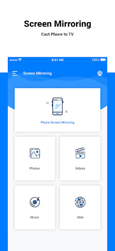 캐스트 TV 앱은 비디오, 음악, 사진 등을 재생할 수있는 화면 미러링을 허용합니다.어디에서나 모든 장치 (스마트 폰, 스마트 텔, 노트북, 태블릿)가있는 스마트 폰이 화면 미러링 앱을 TV에 쉽게 연결할 수 있습니다.