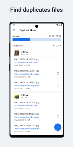장치에서 중복 파일 찾기 내부 및 외부 스토리지.