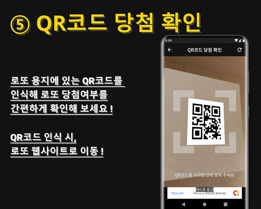 - 간편하게 로또용지에 있는 QR코드로 당첨여부를 확인할 수 있습니다. QR코드 인식 시, 해당 로또 웹사이트로 이동합니다.