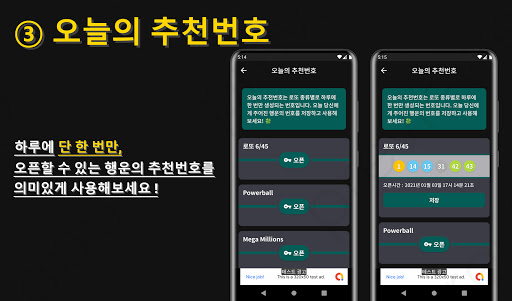 - 하루에 딱! 한 번만 생성되는 행운의 추천번호를 의미있는 곳에 사용해 보세요.