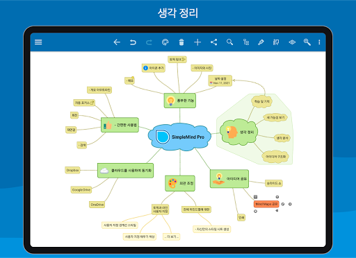 마인드 매핑은 생각을 정리하고, 정보를 기억하고 새로운 아이디어를 창출하는 데 유용합니다. 그래서 언제, 어디서나 마인드 매핑을 할 수 있는 탁월하고 직관적인 앱을 개발했습니다.