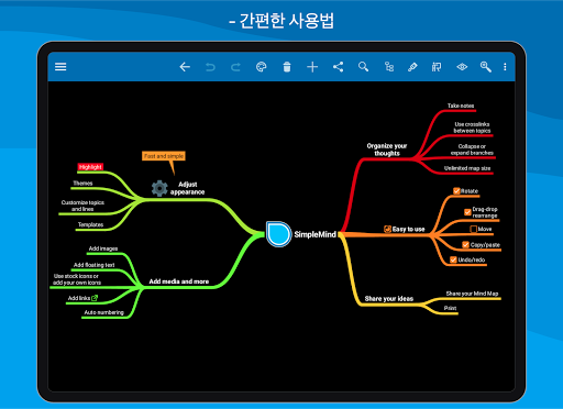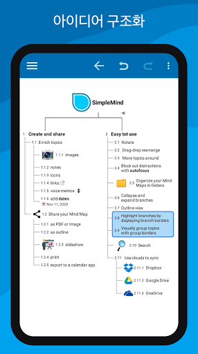Android용 SimpleMind는 휴대폰과 태블릿에 모두 최적화되어 있습니다.