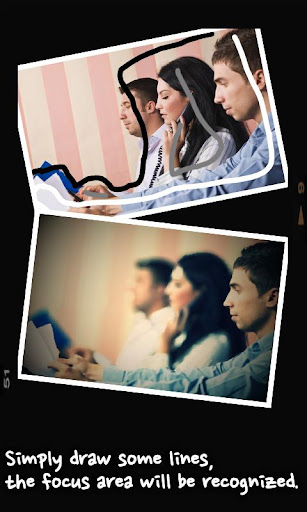 사진에 포커스 영역을 세밀하게 지정할수록 최종 결과물은 더욱 더 자연스럽고 예술적으로 변합니다. 이를 위해, AfterFocus는 사용자가 마킹한 선을 중심으로 주변 경계선을 자동 인식해 주는 기능을 지원합니다. 이 기능을 이용하면 스마트 폰과 같은 작은 화면에서도 포커스 영역을 빠르고, 세밀하게 지정할 수 있습니다.