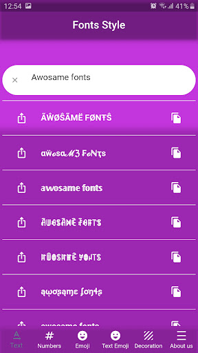 Fonts 앱을 사용하면 장치에 사용 된 글꼴을 변경할 수 있습니다.Instagram 계정을 더 매력적으로 보이게합니다.WhatsApp 및 Snapchat에서 연락처에 깊은 인상을줍니다.Facebook 및 Twitter와 같은 다른 소셜 미디어 플랫폼에서 더 좋아합니다.이 앱에는 매우 독특한 스타일의 100 개가 넘는 글꼴이 포함되어 있습니다.모든 글꼴은 무료로 사용할 수 있습니다.