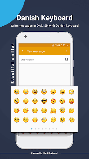 you can write all Danish letters and words very fast and easily because the interface of this new best Danish new keyboard is user friendly. English and Danish Keyboard with photo having more than 1000 Emoji and it is fully free to use.