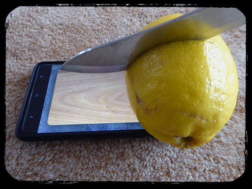 3) put a fruit e.g. a lemon on your mobile cutting board