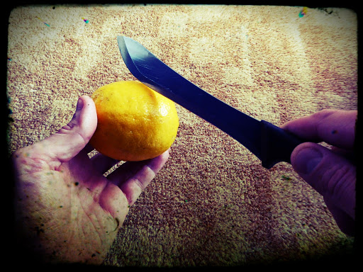 4) with a sharp knife slice up your lemon