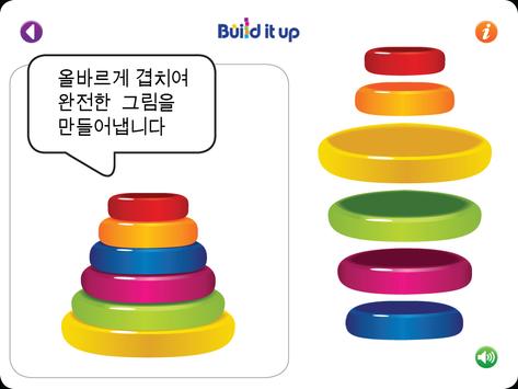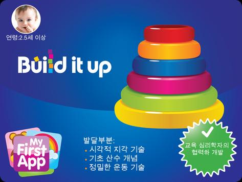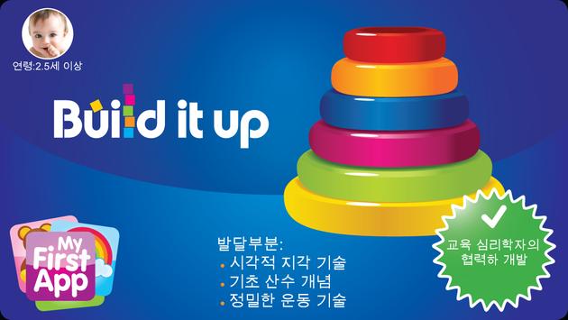 빌드잇업(Build it up)은 2.5세 이상 유아들의 시각적 지각력과 미세운동능력의 발달을 도와줍니다. 크기, 위와 아래, 전과 후 같은 기본적인 수학 개념의 발달도 돕습니다.