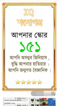 Test Your IQ , Test your Brain power and test your intelligence just by answering 25 simple and intuitive questions . Multiple choice quiz . Each Question has 6/7 marks . You can see your intteligence certificate after completing the Quiz. Easy to use and easy to result. Very small in size but perfect in testing IQ .