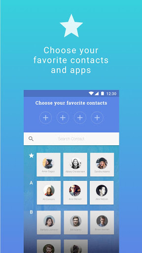 * Customizable startup screen within your home screen where chosen contacts are made available along with your favorite and latest apps. All easily changeable!