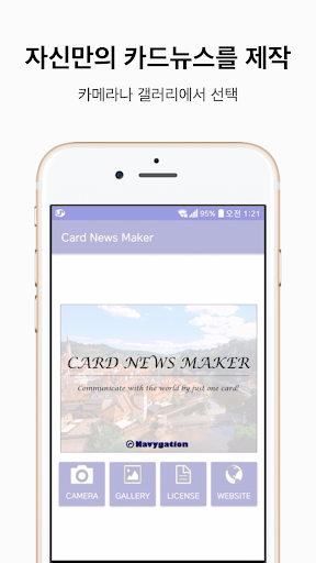 Card News Maker는 무료 앱으로, 사용자가 카메라로 사진을 찍거나 갤러리에서 가져와서, 사진을 마음대로 편집하여 만든 카드 뉴스를 공유할 수 있게 하는 앱입니다.