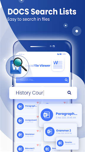 신속하게 모든 DOCX 문서와 워드 파일 목록을 검색 또는 DOCX 파일 리더 application📄의 간단한 검색 옵션을 원하는 DOCX 파일을 찾을 그림. "즐겨 찾는 ♥"옵션을 클릭하여 좋아하는 Word Docx 파일을 구분하십시오. Docx Viewer 응용 프로그램은 모든 Office Docx 파일의 이름을 바꾸거나 삭제하고 공유하며 검색하는 것과 같은 모든 필수 옵션으로 발생합니다. 모바일의 모든 단어 파일을 한 곳에서 탐색하여 쉽게 스크롤 할 수 있습니다. Android 휴대 전화의 많은 메모리 공간을 소비하지 않는 가장 작은 문서 리더 앱입니다. Docx File Reader App은 모든 Docx 파일, Doc Office 문서 및 Microsoft Word 파일을 최상의 방식으로 나타내는 잘 명령 응용 프로그램입니다. 눈을 돌보고 파일 리더 응용 프로그램이있는 고해상도 세련된 화면에서 Word 문서를 문서화하십시오. 이 응용 프로그램은 학생과 직원에게 매우 도움이됩니다. DOCX READER Application을 사용하여 Notes 일별 메모, 단어 파일을 어셈블 할 수 있습니다. Office 작업을 잃는 것에 대해 화가 나지 마십시오. Docx Viewer 앱은 모든 DOCX 문서와 Word, DOC 파일을 저장합니다.
