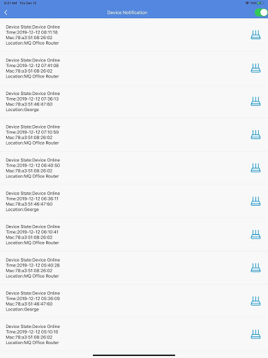 * receive a notification reminder when the device is online or offline.