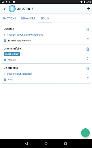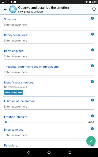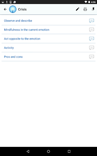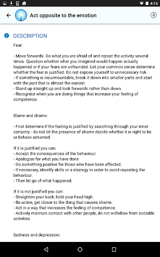 이 앱에는 변증법 행동 치료법에 사용 된 기술을 기반으로 자세한 설명, 실무 팁 및 이론적으로 다양한 어려움을 겪는 데 매우 효과적이었습니다. 특히 효과적인 기술에 중점을 둡니다. 기술은 Mindfulness, 대인 관계 기술, 감정 규정, 고민 공차, 검증 및 문제 해결 6 가지 모듈로 나뉩니다. 앱의 기능은 기술에 대한 접근성을 학습하고 접근 할 수있는 기능을 강화하고 효과적인 행동의 발전을 돕기 위해 고안되었습니다.