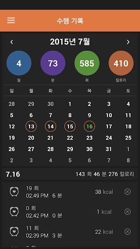 운동 시간 뿐만 아니라 칼로리 소모량도 종합해서 보여준답니다.