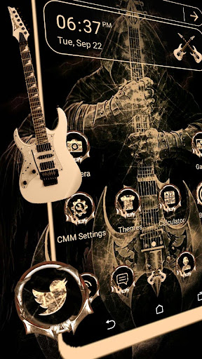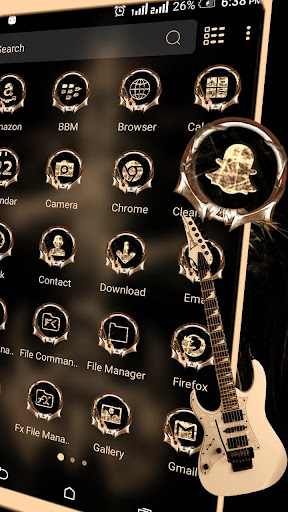 테마를 적용하려면 먼저 발사기를 설치하십시오. 전화를 세련되고 질서 정연하고 시원하게 만들기 위해 적용하십시오. 휴대 전화의 원본 앱 아이콘은 특별 기타 악마 테마로 통합됩니다. 다른 범주의 테마를 좋아한다면 테마 컬렉션에서 찾을 수도 있습니다.