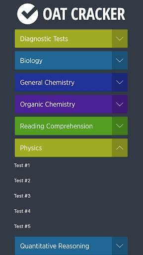 → 생물학, 일반 화학, 유기 화학, 물리학, 독해력 및 수학에서 30 개 이상의 검안 테스트 테스트