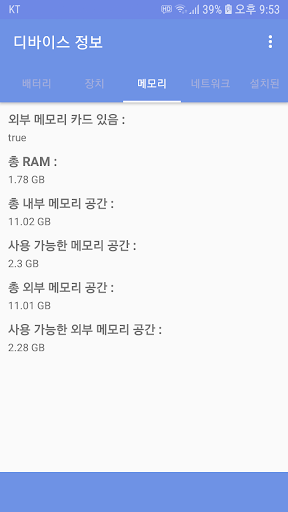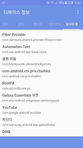 장치 정보에는 CPU, RAM, OS, 센서, 저장소, 배터리, SIM, Bluetooth, 설치된 응용 프로그램, 시스템 응용 프로그램 등에 대한 정보가 포함됩니다.