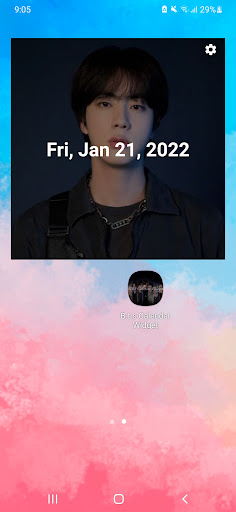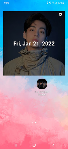 Jin, Suga, J-Hope, RM, Jimin, V 및 Jungkook의 모든 B.T.s 회원의 모든 B.T.s.s의 배경 테마가있는 캘린더 2021 위젯.