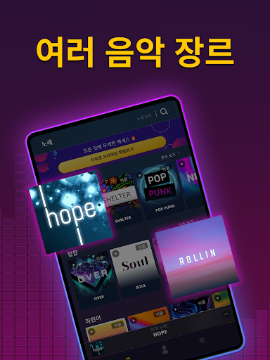 모든 장르의 곡이 제공되어 drum pad로 자신만의 히트곡을 만들 수 있습니다.
