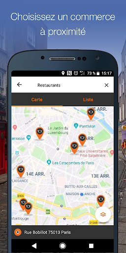 L'application utilise la géolocalisation de votre smartphone pour vous permettre de trouver, à proximité de l'endroit où vous vous situez, les professionnels dont vous avez besoin : restaurant, pharmacie, banque, station-service, fleuriste...