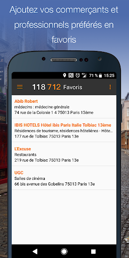 - Sauvegardez selon vos souhaits les coordonnées dans votre carnet d'adresses et/ou dans vos favoris sur l'application.