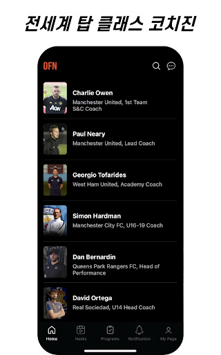 ⊙ OFN은 선수에게 필요한 모든 종류의 전문가를 제공합니다. 프로처럼 연습하세요.