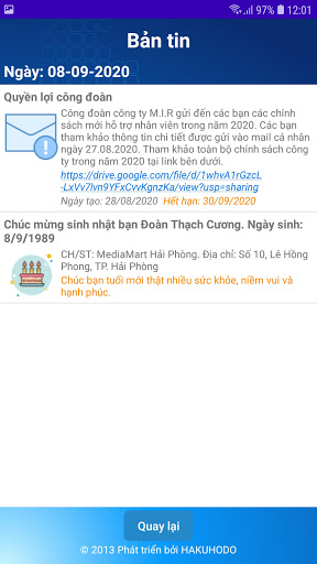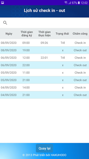 * Phiên bản 5.0: - Cập nhật thêm tính năng tính thời gian trên chấm công - Cập nhật hiệu năng.