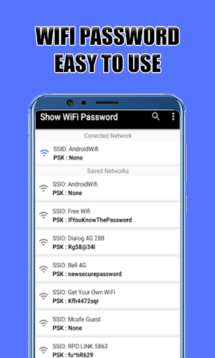 WiFi 암호 알림 : 최고의 WiFi 암호 보호기, 복구 및 WiFi 암호 알림.Android 휴대 전화에서 이전에 저장 한 WiFi 암호를 쉽게 찾을 수 있습니다. 이전에 연결된 네트워크의 WiFi 암호가 검색되고 목록보기에서 표시됩니다.