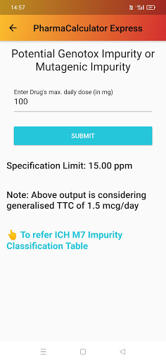 - ICH M7 기반의 잠재적 인 유전 독성 불순물 한도 계산기로