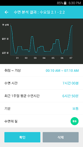 fit2day는 당신의 수면 주기를 분석해서 최대한 얕은 수면 상태에서 개운하게 일어나도록 도와줍니다.