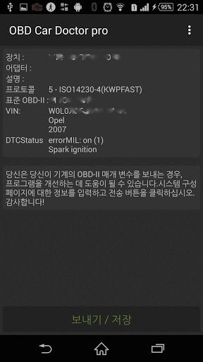 주의! 이 프로그램은 ELM327 또는 호환되는 블루투스 어댑터가 필요합니다.