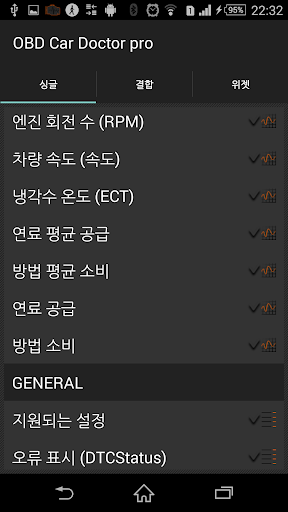 •엔진과차량의 파라미터들을 실시간으로읽고 : 속력, 속도, 온도, 압력, 산소 센서 및 기타 여러 파라미터 지원