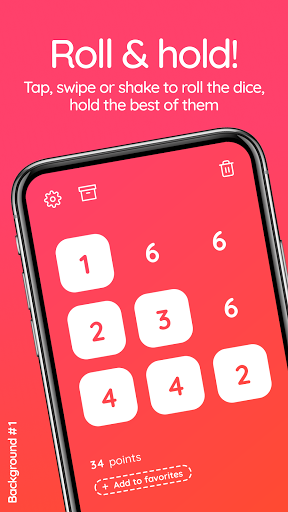를 선택하십시오. , 애니메이션 가상 주사위에서 난수 숫자를 얻으려면 스 와이프하거나 흔들어