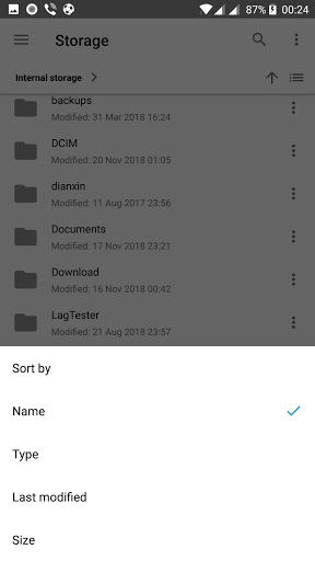 - Sort files by name, size, type, modification time.