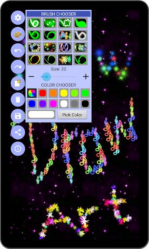 Glow Draw에는 16 종류의 브러쉬가 포함됩니다.드로잉과 낙서는 어린이와 성인 모두에게 매우 쉽고 재미있을 것입니다.아름답고 눈길을 끄는 마법의 낙서 라인