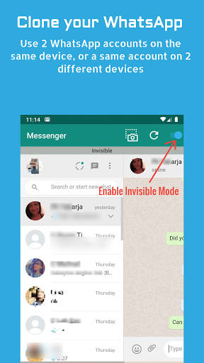 With WhatsClone Messenger you will have two different mobile device for the same account, also you are able to save any status story and share it with your friends, and finally you can chat with any number on WA without saving it in your contact.