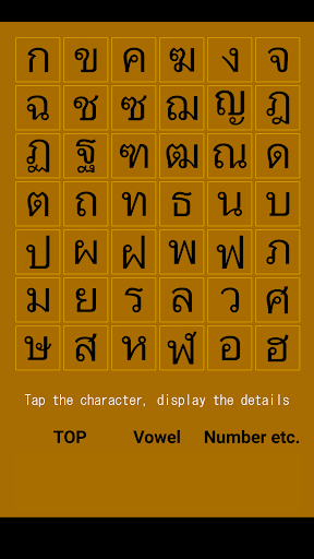 This application displays the details of the consonants, vowels, numbers and symbols tap on randomly displayed Thai characters.Also, you can learn by character type, such as only consonants, only vowels.