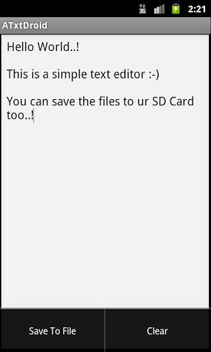 ATxtDroid is a simple, light-weight text editor to write notes and save them on the SD Card(External Storage)